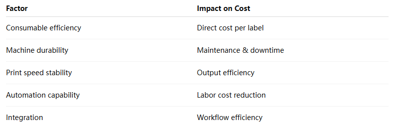 A cost-effective label machine printer is not the cheapest option—it’s the one that minimizes total operating costs while maximizing output.