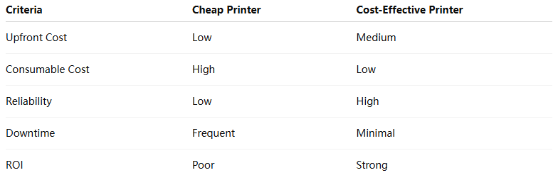 Many buyers make the mistake of focusing only on the upfront price. However, a cheaper printer often leads to:
