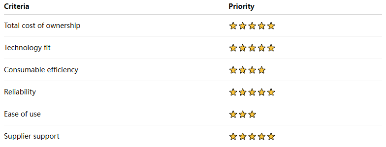 A: Choose efficient consumables, the right technology, and a reliable machine.