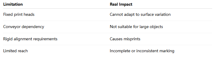 These factors make consistent, high-quality printing extremely difficult with fixed systems.